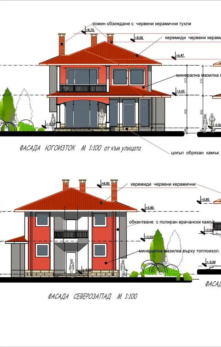 Квадратурата на покрива и терасите общо е 235 квадратни метра.