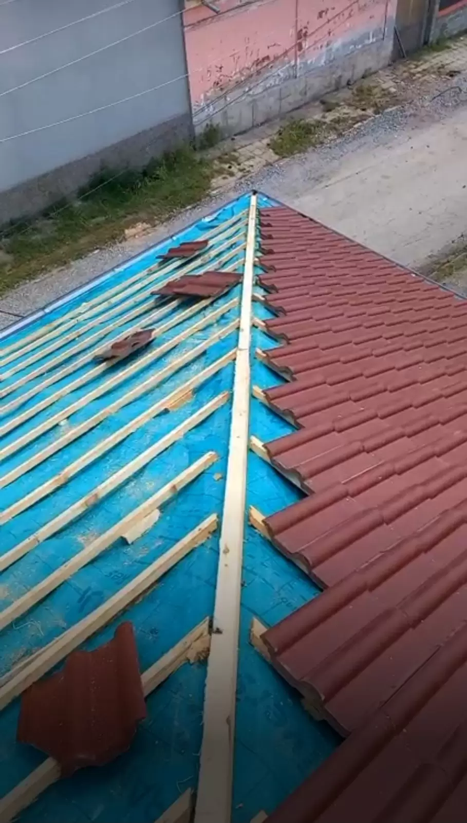 Изградихме стабилна дървена скара от летви, която предоставяше необходимата опора за новите керемиди. Това беше съществена част от процеса, която гарантираше правилното застъпване на керемидите за оптимална водонепроницаемост.