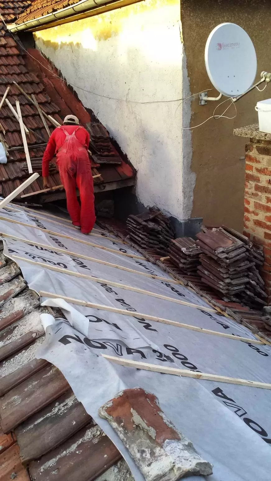 Почистване на покрива: Първата стъпка е цялостното почистване на покривната конструкция. Това включва премахване на всички натрупани отпадъци, мъхове, листа и други елементи, които могат да затруднят ремонтните дейности и да скрият потенциални проблеми.